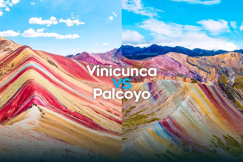 Aunque tanto Palcoyo como Vinicunca son conocidas por sus montañas de colores, hay diferencias significativas entre las dos. Vinicunca, también llamada Montaña de Siete Colores, es más famosa y atrae a una mayor cantidad de turistas. Por otro lado, Palcoyo ofrece una experiencia más tranquila y menos agotadora debido a su ruta de acceso más fácil.